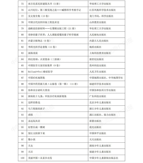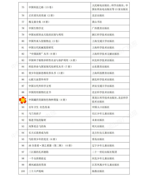 黑龙江科学技术出版社《中国东北药用植物资源图志》(9册),黑龙江人民出版社《为你而生——刘永坦传》以及黑龙江科学技术出版社与北京科学技术出版社联合出版的《中国藏药资源特色物种图鉴》(4册)获第八届中华优秀出版物(图书)奖。