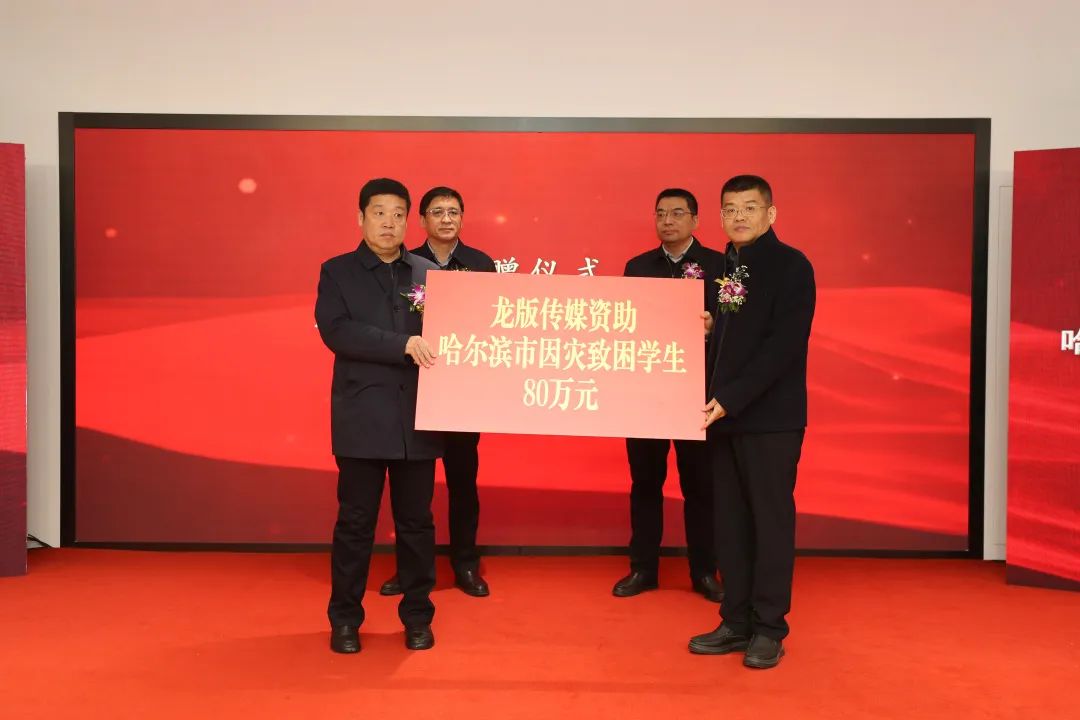 开业庆典上,举行了“新时代巾帼文明学习驿站”“黑龙江省直关心下一代教育实践基地”“青少年阅读实践基地”授牌仪式,龙版传媒向哈尔滨因灾致困学生捐赠80万元。