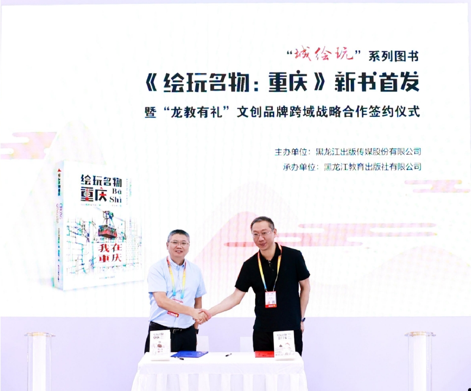 2025年7月25 日上午,第33届全国图书交易博览会现场,一场融合地域文化与创意的活动精彩上演。由乐鱼网页版直接进入主办、黑龙江教育出版社有限公司承办,以“尔滨的雪吹进山城”为主题的“城绘玩”系列新书《绘玩名物:重庆》首发仪式,与“龙教有礼”文创跨域战略合作签约仪式在黑龙江展区顺利举办,为这场全国性的图书盛会增添了一抹独特的文化亮色。